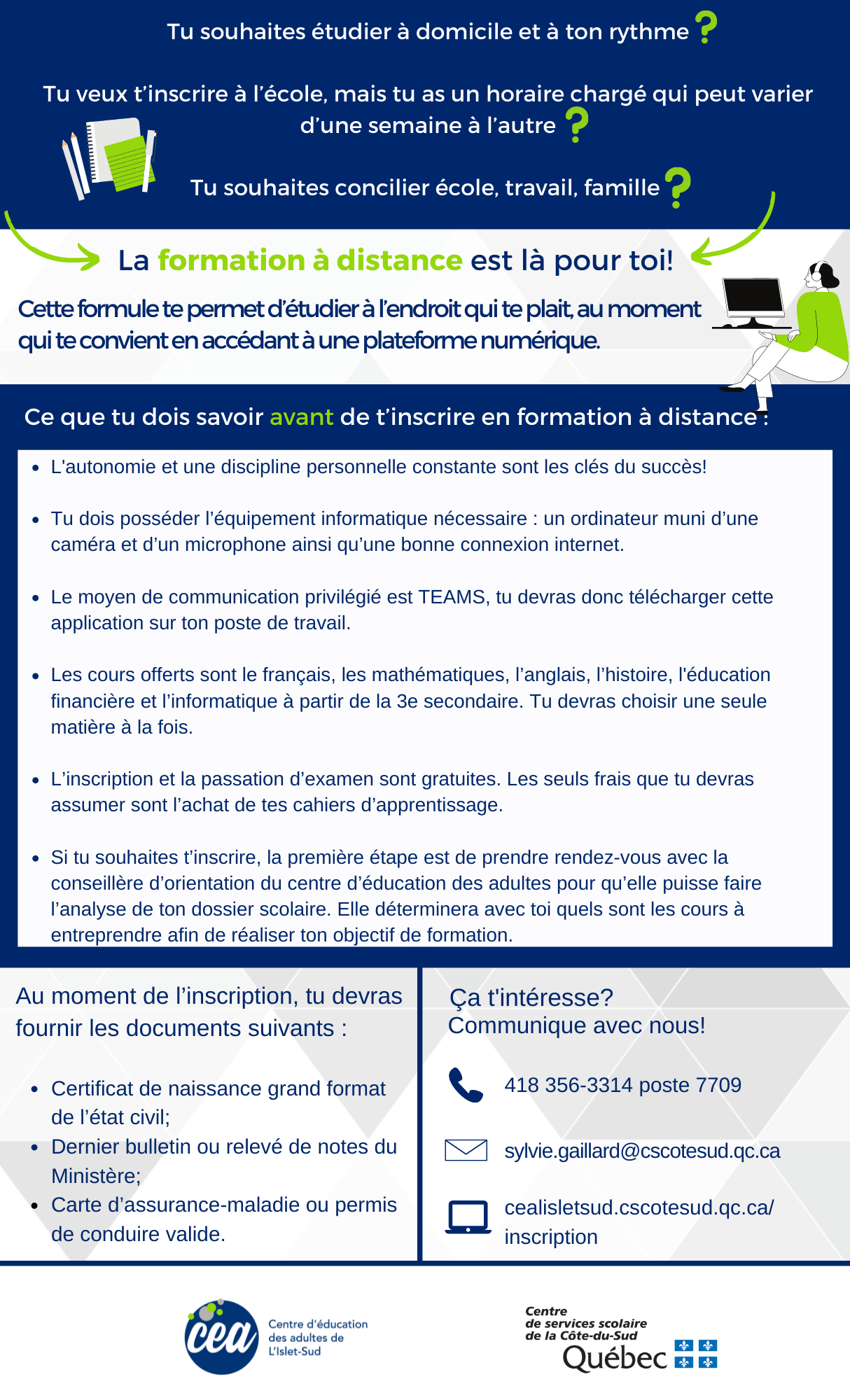 Cliquez ici pour consulter le guide de l’élève